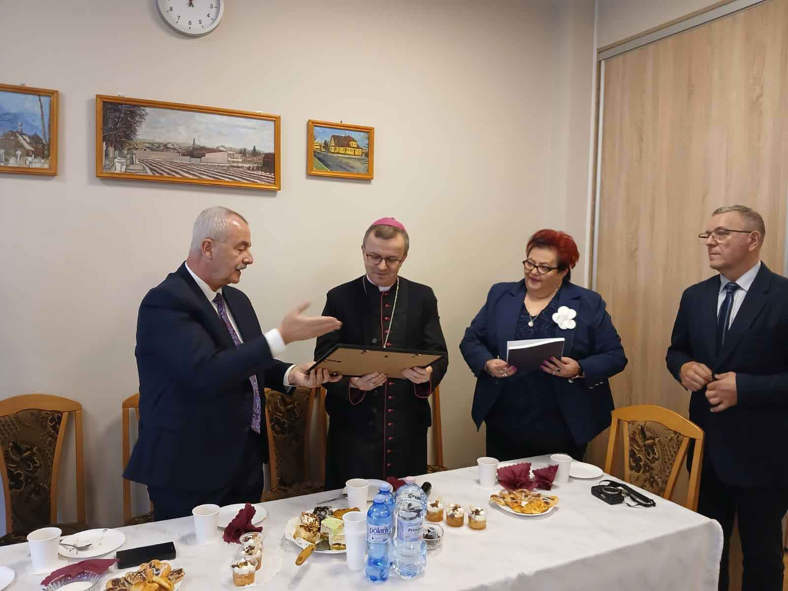 Kierownik Klubu Edward Tetlak zapoznał Księdza Biskupa z formami działalności Klubu. Spotkanie przy kawie i słodkim poczęstunku przygotowanym przez członkinie Klubu zakończyło się wręczeniem Księdzu Biskupowi pamiątkowego dyplomu.