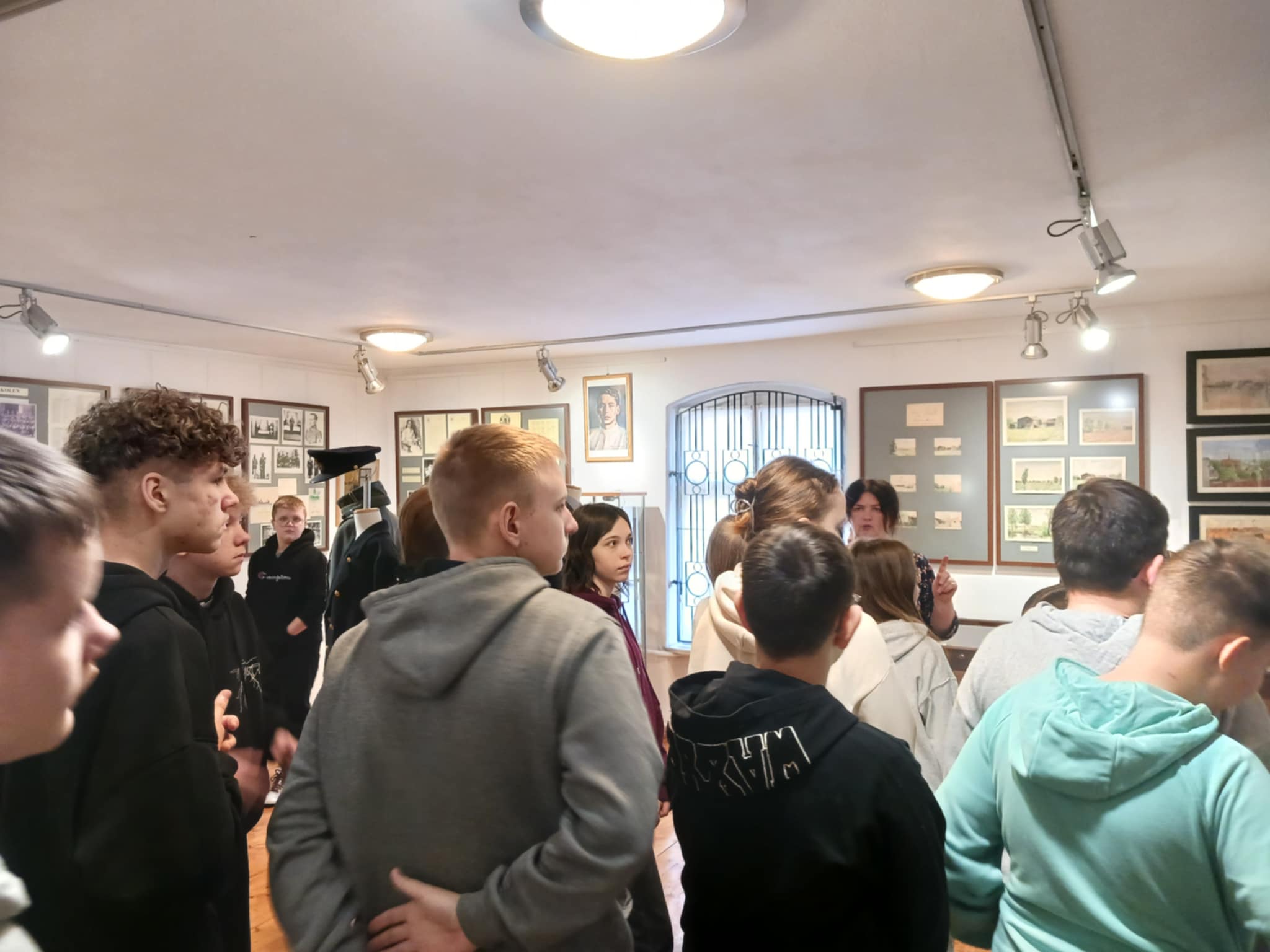 W pierwszym etapie zwiedzania uczniowie obejrzeli film przedstawiający trudne losy ludności zamieszkującej Ziemię Ostrzeszowską w czasie II wojny światowej. Mieli również możliwość usłyszeć wiele cennych informacji i ciekawostek z tego czasu, przekazanych przez kustosza muzeum. Następnie dowiedzieli się o tym, jaki związek z Ostrzeszowem mieli norwescy oficerowie i obejrzeli wystawę poświęconą norweskim jeńcom.